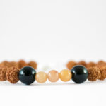 Materijali: netretirano poludrago kamenje: crveni aventurin 5mm, crni opsidijan 8 mm, lava 8mm, certificirana prirodna netretirana zrna rudrakše 7 mm, sajla i kopča.