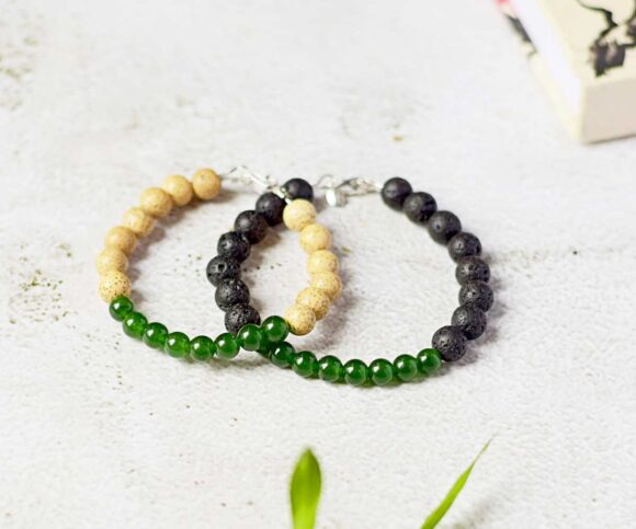 Ova narukvica inspirirana je Dalekim Istokom, njegovom egzotikom i mudrošću. Ova dva izuzetno cjenjena i duhovna dragulja Istoka su posebni po tome što donose duboki sklad cijelog našeg bića te istovremeno djeluju na duhovnom i materijalnom nivou te tako povećavaju obilje i blagostanje kao i duhovni rast i ostvarenje.