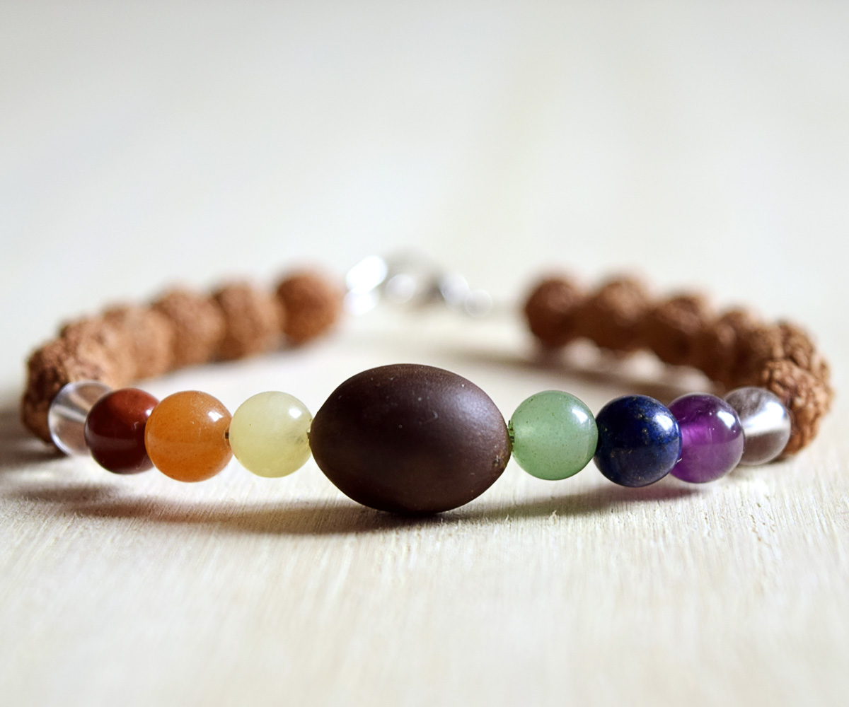 Čakre su energetski centri u našem tijelu kroz koje teče vitalna energija. Kada su usklađene imamo mnoge dobrobiti: visok nivo energije, budan i miran um, životna radost, kreativnost…  Svaki kamen predstavlja jednu od čakri te ju aktivira i harmonizira. S ovom narukvicom aktiviraj svoje energetske centre i postigni sklad uma , duha i tijela te povećaj nivo energije i vitalnosti.
