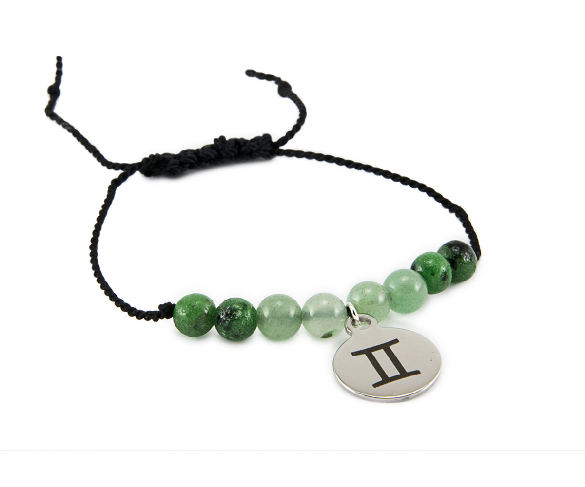 Blizanci su komunikativni, zaigrani i uvijek u toku s najnovijim zbivanjima. Izuzetno su svestrani, no ponekad im nedostaje fokusa i da završe ono što započnu. U tome im pomaže ova narukvica sa zelenim aventurinom i rubinom u zoisitu koja im daje stabilnost i ustrajnost te pomaže da realiziraju svoje ideje. Podržava njihovu komunikativnost i izražavanje te radoznalu i veselu prirodu.