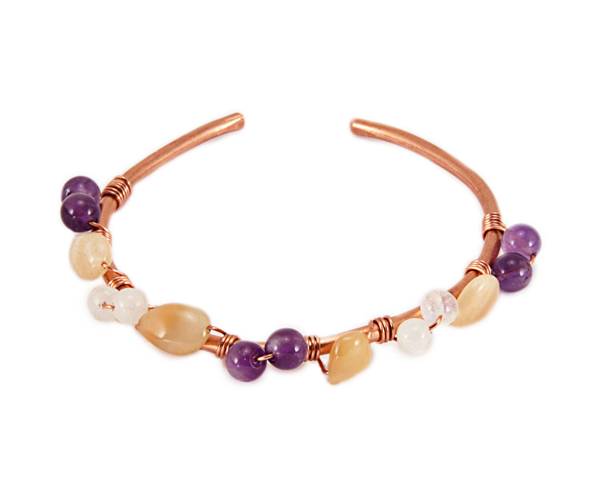 Materijali: netretirano poludrago kamenje 6 mm: ametist, rainbow mjesečev kamen i suze narančastog mjesečevog kamena.
